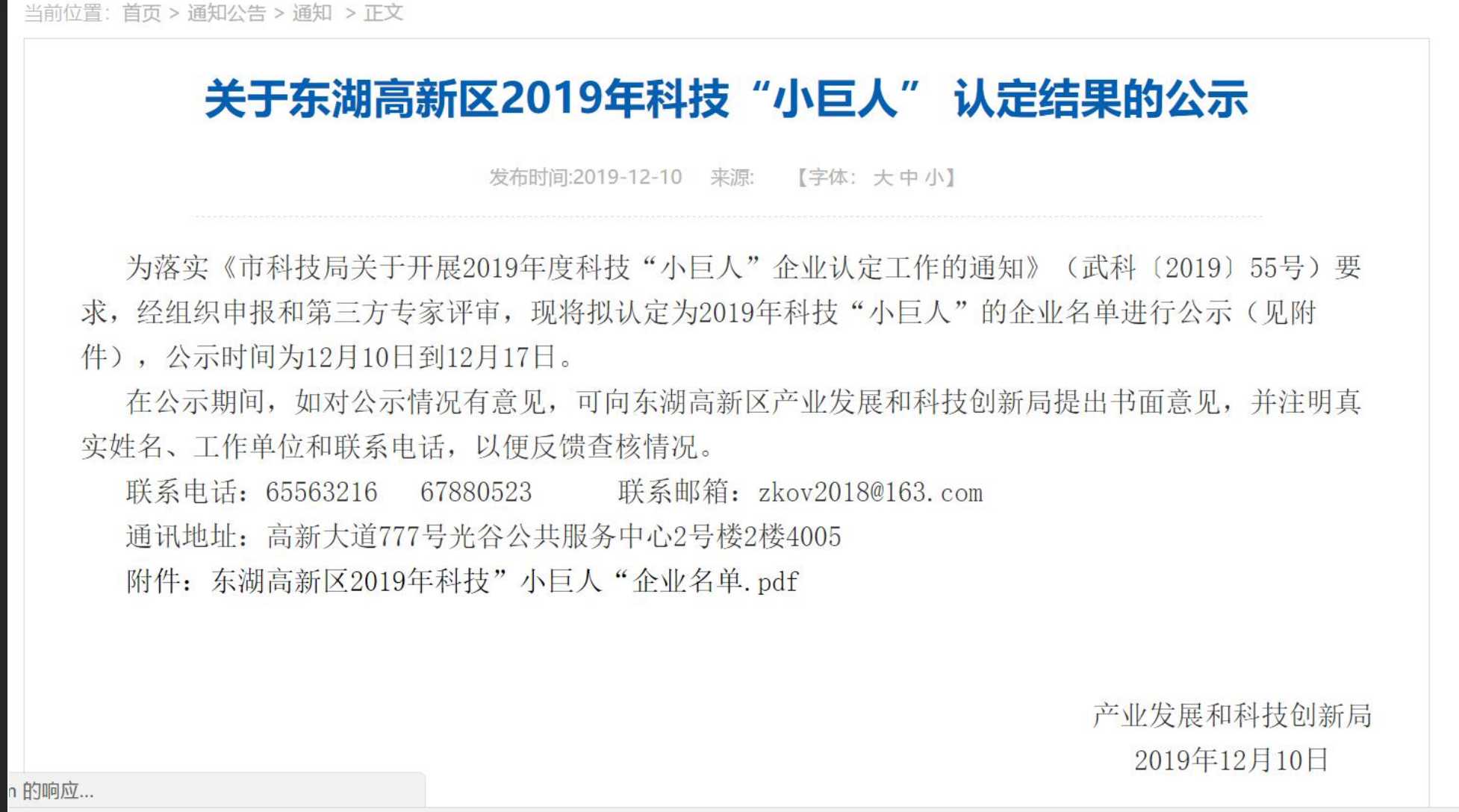2019年科技“小巨人”(光谷環保)